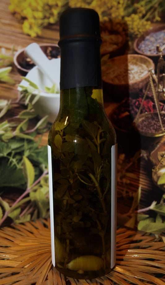 Bay leaves, Garlic, Chives, and Chili Piquin herb Cooking Oil